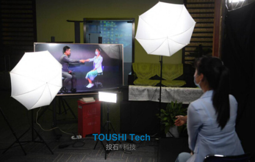 投石虛擬直播間:我們提供攝像機(jī)和推流儀,電動(dòng)綠幕 ,三維場(chǎng)景 和三維特效整套解決方案。