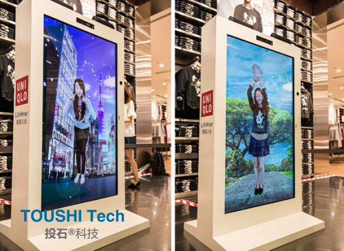 紐約耐克NIKE體驗(yàn)店在服裝展示區(qū)配備了“霧化”效果的智能屏幕:當(dāng)顧客靠近時(shí),屏幕從透明變成霧化效果,穿有NIKE產(chǎn)品的模特從霧中沖出;當(dāng)顧客離開后,智能屏幕又從霧化效果變?yōu)橥该鞯臓顟B(tài)。