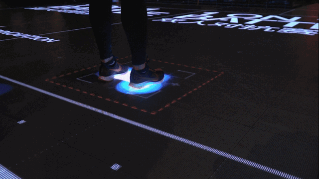 上海耐克NIKE淮海路體驗(yàn)店的這款互動(dòng)裝置將虛擬與現(xiàn)實(shí)結(jié)合,通過觸摸和滑動(dòng)屏幕上的紅點(diǎn)及線條就可以直觀的體驗(yàn)到四個(gè)關(guān)鍵的壓力點(diǎn),和以此打造出的這雙鞋多向的抓地紋理。