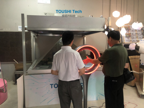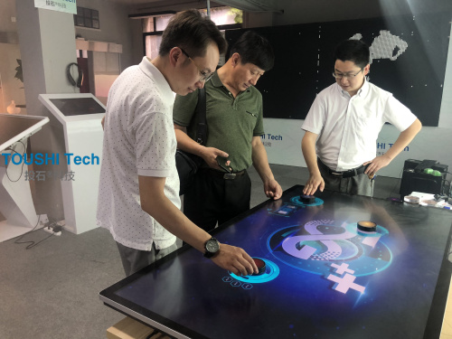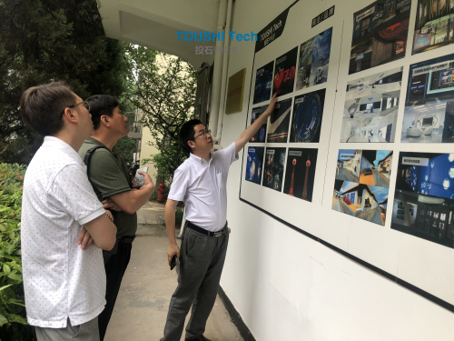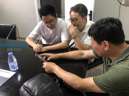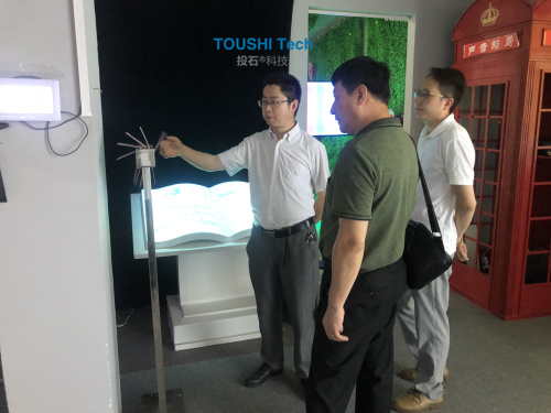 投石智能系統(tǒng)孫峰峰總經(jīng)理向來訪嘉賓介紹了公司新科技展品并一一展示效果。