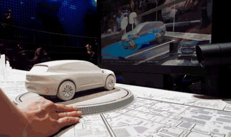 互動(dòng)沙盤裝有多個(gè)攝像頭,將沙盤拍出了真實(shí)生活中的角度,結(jié)合AR的動(dòng)畫內(nèi)容。 英菲尼迪展臺(tái)互動(dòng)(芯片感應(yīng)+實(shí)時(shí)三維演示系統(tǒng)+觸摸屏)