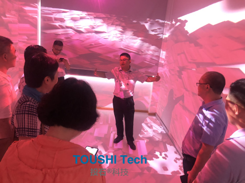 隨后來到投石智能系統(tǒng)沉浸式藝術(shù)展廳,感受投影帶來的奇妙世界。市推進(jìn)辦、市教育局高度肯定了投石智能系統(tǒng)對外文化交流活動方面取得的成績,并對這些創(chuàng)意交互裝置寄予厚望。 投石智能系統(tǒng)認(rèn)為未來文旅夜游的技術(shù)趨勢有幾個方向