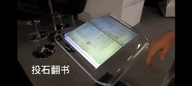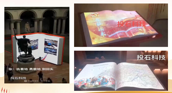投石智能系統(tǒng)采用了1臺(tái)6000激光投影機(jī)加短焦鏡頭,實(shí)現(xiàn)顯示畫面4.86*1.8米,展示中國(guó)共產(chǎn)黨的光輝歷程簡(jiǎn)介,觸摸方案上采用激光掃描儀實(shí)現(xiàn)高速掃描識(shí)別觸發(fā)精準(zhǔn),支持多人觸控,誤差不超過1cm。 無錫五洲國(guó)際工業(yè)博覽城商圈黨群服務(wù)中心展廳虛擬翻書
