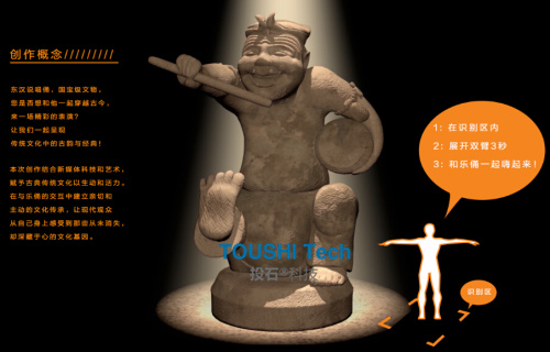 手舞足蹈:觀眾根據(jù)指示展開雙臂激活樂俑開始表演。