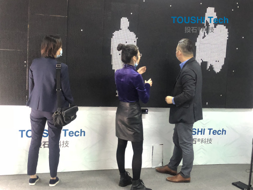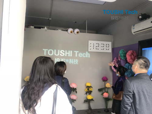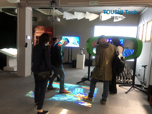 投石智能系統(tǒng)余老師接待并向來訪嘉賓介紹了公司展品并一一展示效果,并且介紹互動裝置的功能及互動效果、應(yīng)用范圍等。