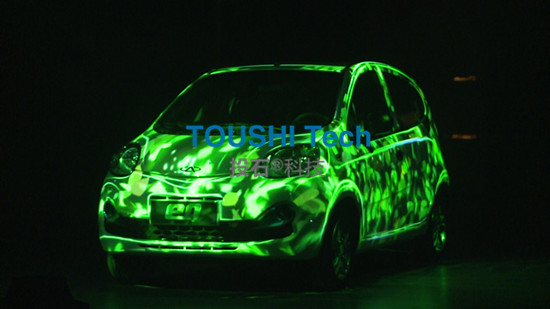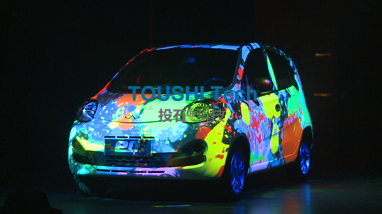 投石智能系統(tǒng)攜手奧美廣告,服務(wù)于奇瑞eQ電動(dòng)汽車新車發(fā)布會(huì),用光影成像的方式亮相新車,以車體為投影背景呈現(xiàn)各種3D科幻效果。 投石智能系統(tǒng)通過(guò)3D Mapping光影成像的方式亮相新車,與此同時(shí),一束巨大的電流激光從主背景射向角落處車輛,舞臺(tái)上出現(xiàn)激光勾勒的汽車剪影,線條不斷流動(dòng),并且以車體為投影背景呈現(xiàn)各種3D科幻效果。