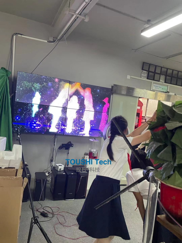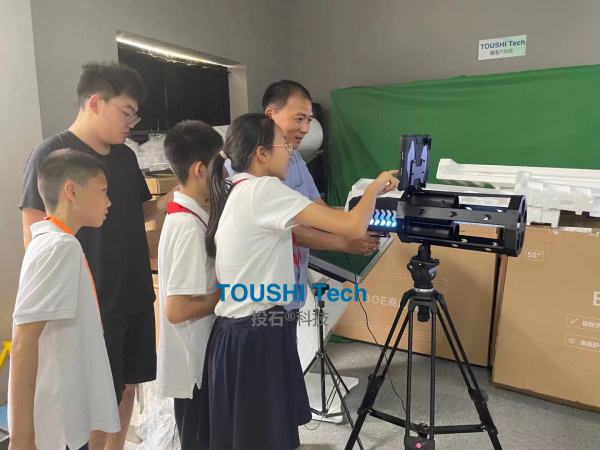 一進(jìn)展廳,師生們就被五花八門的科技展品給吸引住了。投石智能系統(tǒng)工作人員領(lǐng)著師生們依次進(jìn)入展廳參觀,并對各個(gè)展廳中互動裝置進(jìn)行講解,同時(shí)都親身體驗(yàn)展廳的高科技裝置。