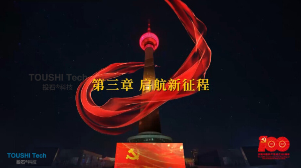 投石智能系統(tǒng)AR燈光秀技術團隊對“慶祝中國共產黨成立100周年”內容做了解析介紹:第一章:百花獻禮百花路 第二章:矢志不渝跟黨走 第三章:啟航新征程