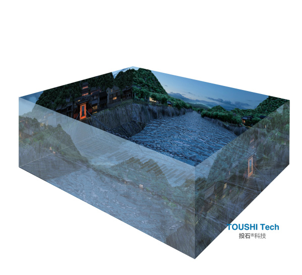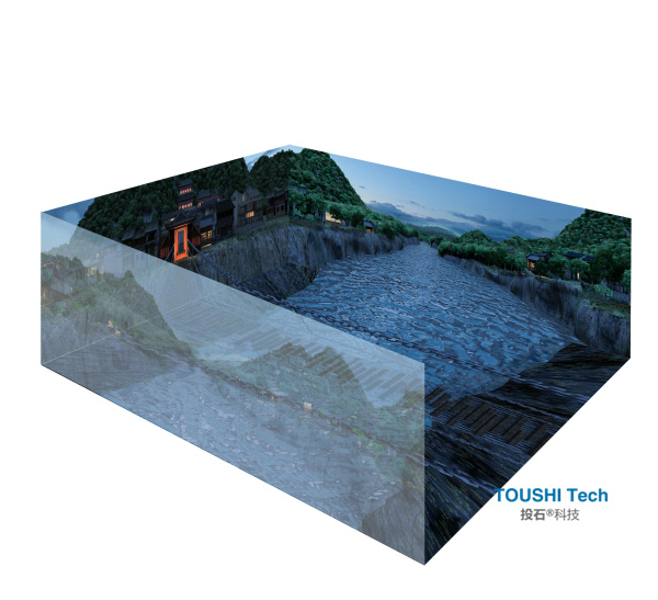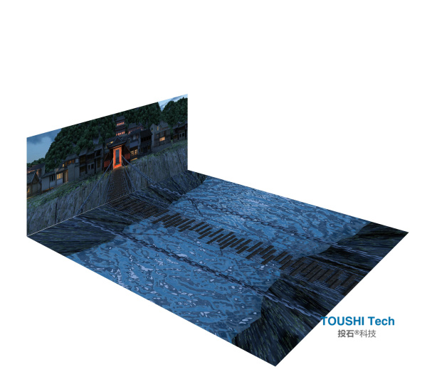 除了室內(nèi)的紅色黨建文化體驗外,投石智能系統(tǒng)還參與建設(shè)了多件公共空間大型戶外黨建裝置,包括AR燈光秀、裸眼3D屏、視覺錯位裝置等等。