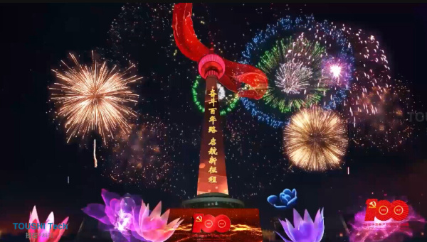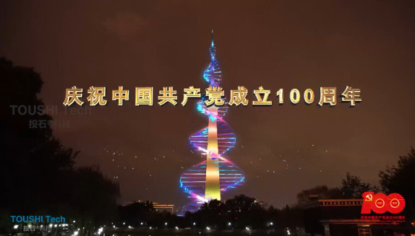 建黨百年投石智能系統(tǒng)獻禮中央電視塔AR燈光秀百花綻放