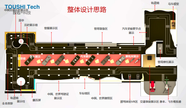 項目展項|全息成像、軌道鏡、翻頁屏、警用摩托車展示區(qū)、馬車展示區(qū)、汽車發(fā)展展示墻、汽車展示區(qū)、警用裝備區(qū)、警服展示區(qū)、交通歷史崗?fù)ふ故緟^(qū)、車標墻區(qū)、牌照展示區(qū)、醉駕體驗VR區(qū)、交通事故展示區(qū)、賽車飛行駕駛模擬區(qū)