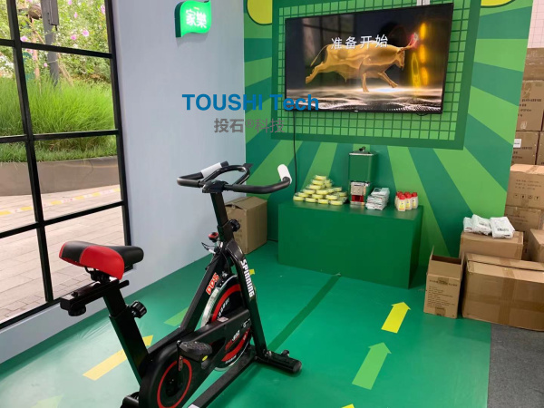 體驗者通過單車騎行控制屏幕三維牛的跑步速度,屏幕還會顯示騎行里程數(shù),速度越快里程數(shù)越多,游戲結(jié)束成功后扭蛋機出扭蛋一個,最終根據(jù)扭蛋內(nèi)的內(nèi)容領取相應獎品。