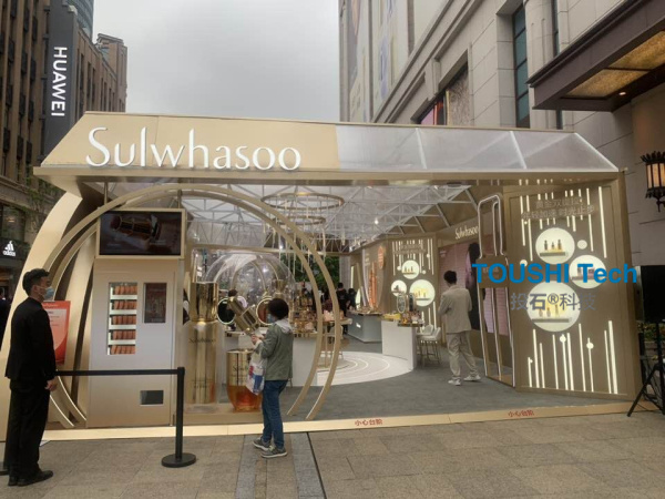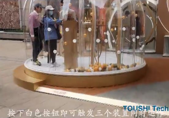 年輕加速,時光止步。2021年4月20日至4月26日,雪花秀帶來人參家族王牌抗老CP——時光雙瓶在上海新世界大丸百貨登場。此次活動中,南京投石智能系統(tǒng)為上海sulwhasoo雪花秀提供自動噴香水機、自動吹海洋球裝置、燈光聯(lián)動裝置。投石智能系統(tǒng)多機聯(lián)動控制裝置被安置在上海新世界大丸百貨雪花秀時光鎖鮮艙限時快閃店門口。一個透明的半圓形櫥窗用于展示該品牌的香水產(chǎn)品。這套裝置只需要一鍵按下白色按鈕即可觸發(fā)三個裝置同時運作,分別是自動噴香水機、自動吹海洋球裝置、燈光聯(lián)動裝置。上海雪花秀快閃店多機聯(lián)動控制裝置技術介紹:本方案包括按鈕啟動聯(lián)動總控三個裝置:風機自動吹海洋球控制,噴水機控制自動噴射,流星燈編程等系統(tǒng)。當體驗者按下裝置屏幕前的白色按鈕,該裝置便啟動,櫥窗四周的海洋球便緩緩吹起,自動噴香水機與燈光聯(lián)動裝置一起啟動。