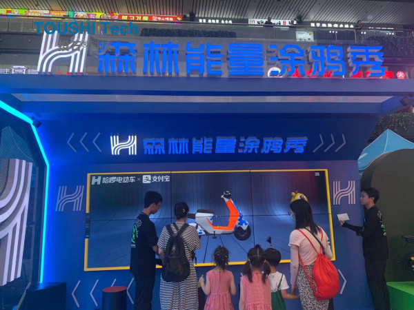 哈啰超級粉絲節(jié)的開幕現(xiàn)場,有嗨爆的互動游戲,森林能量涂鴉秀、拉風的騎行展示,街舞炸場表演,螞蟻森林能量收集挑戰(zhàn)等,只要敢釋放自己的魅力與勇氣,就將有機會獲得超多福利。南京投石智能系統(tǒng)在杭州為此次哈啰電動車x支付寶717超級粉絲節(jié)騎幻森林提供森林能量涂鴉秀。現(xiàn)場體驗者通過現(xiàn)場制作的實物顏料桶對大屏幕上的哈啰電動車進行虛擬涂鴉,活動現(xiàn)場參與火爆。