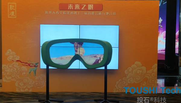 未來之眼魔法眼鏡互動裝置:投石智能系統(tǒng)未來之眼魔法眼鏡是一個普通透明的屏幕矩陣,看似平淡無奇,沒有任何畫面,無任何特別之處,可就當體驗者對著魔法眼鏡裝置,神奇的事情就會發(fā)生,鏡面照到的地方就會有神奇的動態(tài)畫面出現(xiàn)。