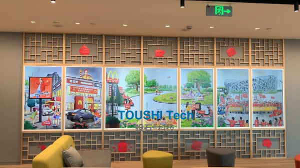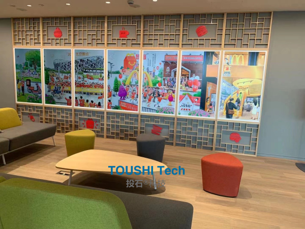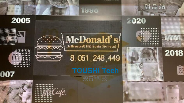 2021年10月8日,南京投石智能系統(tǒng)在上海為為麥當(dāng)勞中國(guó)總部新辦公大樓提供磁力翻轉(zhuǎn)體感點(diǎn)陣屏和55寸七聯(lián)屏國(guó)潮動(dòng)態(tài)畫(huà)屏。