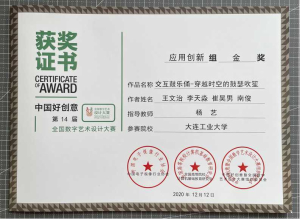 在2019年,南京投石智能系統(tǒng)有限公司和大連工業(yè)大學藝術設計學院數字媒體系楊藝老師工作室建立了校企合作項目“數字科技藝術應用與設計創(chuàng)新基地”,其中作品《交互古樂俑裝置,穿越時空的鼓瑟吹笙》,是企業(yè)與教育各學科領域的深度融合,是推動新一代信息技術理論創(chuàng)新和技術突破。 在科技和數字藝術相融合下,深化教學改革的產教結合研究與實踐中,該作品《交互古樂俑裝置,穿越時空的鼓瑟吹笙》取得了豐碩的教學與科研成果: