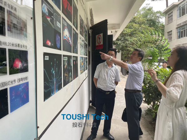 南京市文化和旅游局一行領(lǐng)導(dǎo)參觀了投石智能系統(tǒng)新媒體藝術(shù)基地,詳細(xì)了解了公司的發(fā)展歷程、核心技術(shù),產(chǎn)品和技術(shù)等方面情況,并對(duì)投石智能系統(tǒng)的快速發(fā)展和取得的成績(jī)給予了充分肯定。