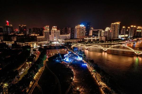 過去、現(xiàn)在和未來,都在這場燈光盛宴中一一呈現(xiàn)。閩江兩岸,高樓林立。在撩人的夜色下,夜空和建筑被燈光照亮。 三大章節(jié),開啟福州的數(shù)字新紀(jì)元