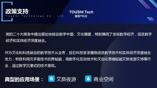 投石智能系統(tǒng)創(chuàng)始人孫峰峰提出了投石智能系統(tǒng)基于元宇宙的三個(gè)觀點(diǎn): 就落地元宇宙項(xiàng)目,陜西文化產(chǎn)業(yè)投資控股(集團(tuán))有限公司副總經(jīng)理徐晉分享了沉浸式的元宇宙體驗(yàn),落地項(xiàng)目是西安的長安十二時(shí)辰,開展了一個(gè)室內(nèi)的商業(yè)街區(qū)文化街區(qū),加上聲光電和一些演繹把它變成一種沉浸式的元宇宙,體驗(yàn)一日夢回唐朝,并且當(dāng)時(shí)的全網(wǎng)點(diǎn)擊量大概20多億,也成為中國文旅界的一個(gè)頭流現(xiàn)象。所以元宇宙產(chǎn)業(yè)的發(fā)展是肯定的。另外徐總也表示現(xiàn)在也在推進(jìn)其他元宇宙項(xiàng)目,打造陜西韓城古鎮(zhèn)要把史記里面的人物作為一種數(shù)字藏品NFT的形式和王者榮耀合作就是做成皮膚,將數(shù)字化產(chǎn)業(yè)豐富起來。
