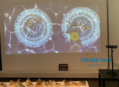 2019年6月,南京投石科技為南京藝術(shù)學(xué)院畢業(yè)展提供如影隨形體感互動裝置及相關(guān)服務(wù)。 投石科技十二生肖體感互動裝置。——《與自己的生肖互動》