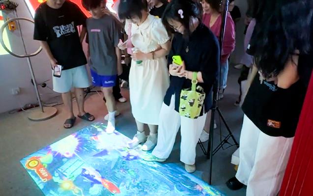 在投石科技的展廳中,看到了許多有意思的裝置,上課過(guò)程中所講的一些原理在這里終于見(jiàn)到了實(shí)物,例如踩投影進(jìn)行“捕魚(yú)”和踢球的裝置,以前我只在網(wǎng)上看到過(guò)與其類(lèi)似的投影互動(dòng),不得不說(shuō),設(shè)計(jì)真的太巧妙了。