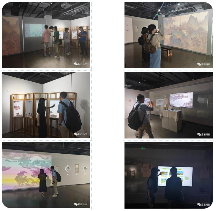 下面是投石智能“AI與中國古典藝術(shù)的氣韻再生”展覽作品:《指尖靈犀》、《羽跡回歸》、《氣韻再生》、《笑傲江湖》、《審美書頁》、《丹青墨語》、《茶韻悠然》和《青韻繪世》等互動體驗精彩瞬間圖集,你可以遠觀作品中的山水畫,也可以近距離接觸互動裝置,與劇情互動,參與其中。