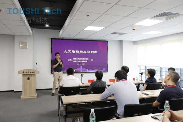 2023年9月4日下午,南京玄武區(qū)政協(xié)主席許愷帶領(lǐng)來(lái)自玄武區(qū)文化、藝術(shù)、科技等不同界別的50多位政協(xié)委員赴南京大學(xué)鼓樓校區(qū)文創(chuàng)藝術(shù)館,開(kāi)展由南京大學(xué)美育工程團(tuán)隊(duì)和南京投石智能聯(lián)合創(chuàng)意策劃并運(yùn)營(yíng)的人工智能美育暨新媒體策展項(xiàng)目——“AI與中華美學(xué)的氣韻再生”學(xué)習(xí)調(diào)研。區(qū)政協(xié)主席許愷,副主席楊冬梅、郭志芹,黨組成員沈湧,黨組成員、秘書長(zhǎng)鄒德勇,區(qū)政協(xié)辦公室、各專委會(huì)負(fù)責(zé)同志參加。