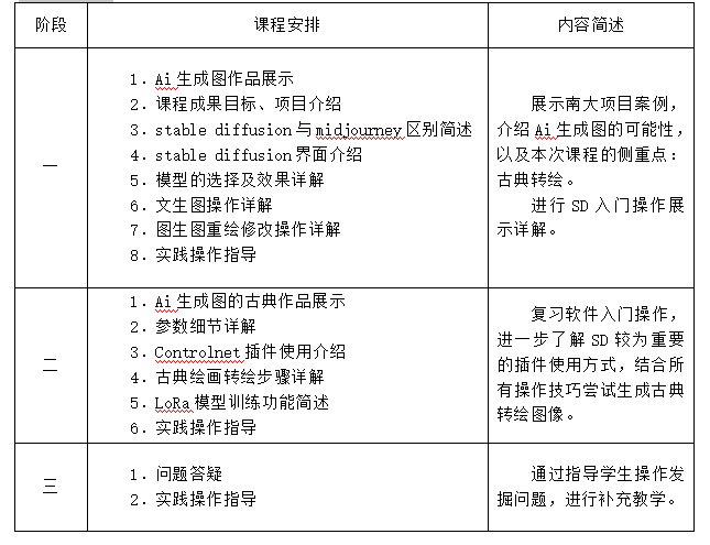 本課程旨在將人工智能與藝術(shù)相結(jié)合,為大學(xué)生提供全新的創(chuàng)作工具和思維方式。通過學(xué)習(xí)最新的人工智能繪畫技術(shù),學(xué)生將能夠在藝術(shù)領(lǐng)域取得更多的創(chuàng)作成就,同時(shí)也有助于推動(dòng)人工智能在藝術(shù)領(lǐng)域的創(chuàng)新應(yīng)用。我們期望本課程將成為大學(xué)生藝術(shù)教育領(lǐng)域的一項(xiàng)重要?jiǎng)?chuàng)舉,培養(yǎng)具備創(chuàng)新思維和跨學(xué)科能力的新一代藝術(shù)家和創(chuàng)作者。