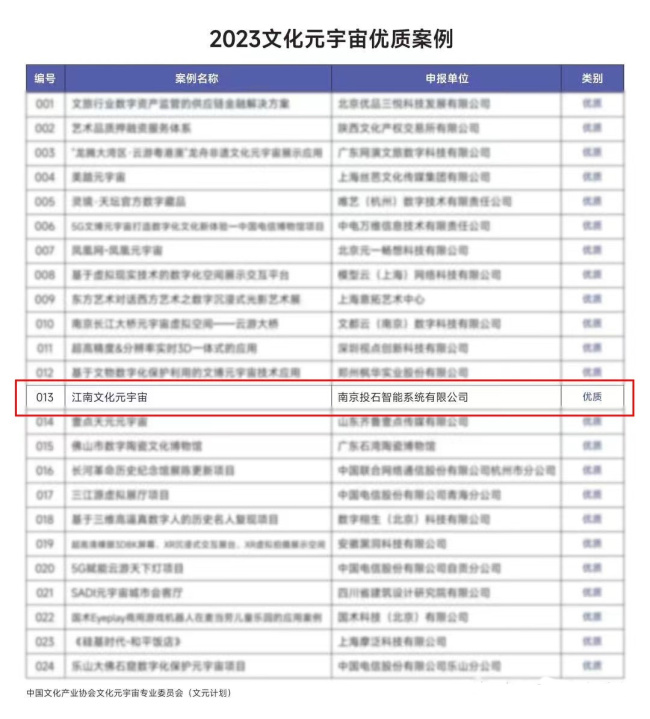 投石《江南文化元宇宙》榮獲中國(guó)文化產(chǎn)業(yè)協(xié)會(huì)2023文化元宇宙優(yōu)質(zhì)案例