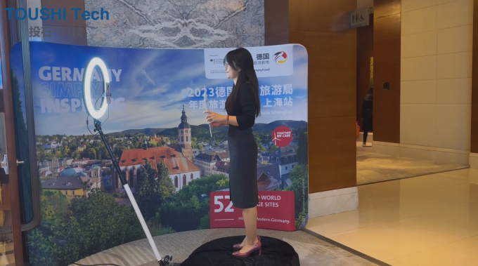 互動裝置已經(jīng)深入到各個行業(yè)和領(lǐng)域中,為人們的生活和工作帶來了巨大的變革。2023年11月10日-14日,在2023年德國國家旅游局年度旅游推介會北京站和上海站的活動中,南京投石分別為兩場活動提供了體感泡泡摳像拍照和騎行漫游德國景點互動裝置,以及360度旋轉(zhuǎn)拍照互動裝置。