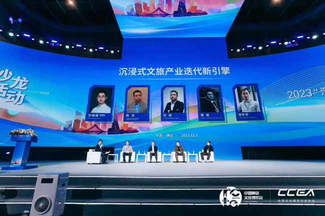 在圓桌對話環(huán)節(jié),南京投石科技有限公司董事長孫峰峰、北京郵電大學(xué)交互技術(shù)與體驗系統(tǒng)文旅部重點實驗室常務(wù)副主任陳洪、深圳市洲明科技股份有限公司副總裁劉俊、無錫拈花灣文化投資發(fā)展有限公司夢想工作室總經(jīng)理程皖、上海劇嗨文化科技有限公司創(chuàng)始人兼CEO湯祚宇圍繞《沉浸式文旅產(chǎn)業(yè)迭代新引擎》展開研討,認(rèn)為沉浸式體驗將深刻改變傳統(tǒng)文旅產(chǎn)業(yè)格局,為行業(yè)帶來更為廣闊的發(fā)展前景。