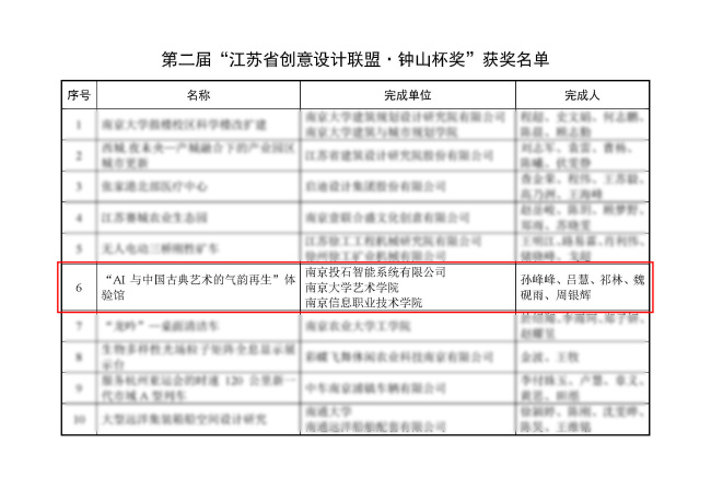 其中,南京投石智能系統(tǒng)有限公司(以下簡稱“投石智能”)與南京大學(xué)藝術(shù)學(xué)院和南京信息職業(yè)技術(shù)學(xué)院聯(lián)合打造的產(chǎn)學(xué)研作品《“AI與中國古典藝術(shù)的氣韻再生”體驗(yàn)館》榮獲第二屆“江蘇省創(chuàng)意設(shè)計(jì)聯(lián)盟·鐘山杯獎(jiǎng)”,與常熟理工學(xué)院合作的產(chǎn)學(xué)研項(xiàng)目《天倫之悅—隔代親子陪伴圈椅設(shè)計(jì)》獲得第二屆“江蘇省創(chuàng)意設(shè)計(jì)聯(lián)盟·鐘山杯獎(jiǎng)”提名獎(jiǎng),此次獲獎(jiǎng)是對投石智能在產(chǎn)學(xué)研項(xiàng)目的肯定和創(chuàng)意設(shè)計(jì)與藝術(shù)創(chuàng)新方面的表彰。