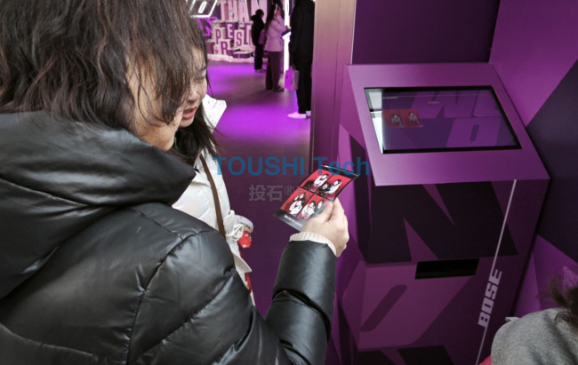 俯拍大頭貼裝置則為體驗(yàn)者提供了趣味性的拍照體驗(yàn)。體驗(yàn)者關(guān)注BOSE公眾號(hào)后,可以在專(zhuān)業(yè)拍照機(jī)上拍攝一組共6張照片,每張照片限時(shí)20秒。體驗(yàn)者可以選擇打印四宮格照片帶走,留下美好回憶。這一環(huán)節(jié)的設(shè)置不僅增加了活動(dòng)的互動(dòng)性和參與度,也提高了用戶(hù)對(duì)BOSE品牌的認(rèn)知度。