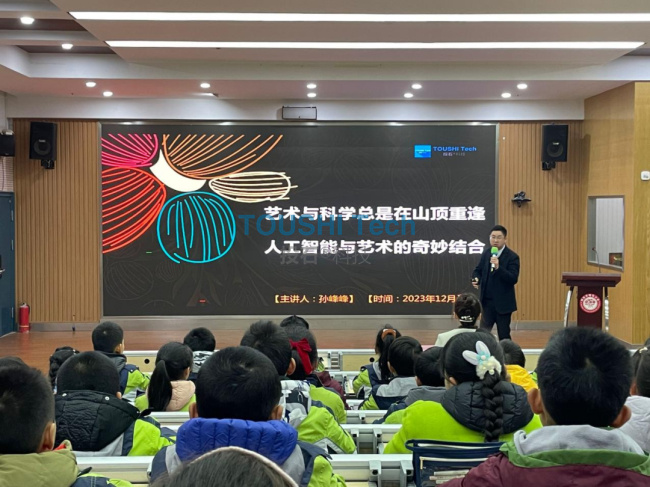 2023年12月27日,南京投石智能系統(tǒng)有限公司董事長、南京大學(xué),南京師范大學(xué),南京信息職業(yè)技術(shù)學(xué)院等大學(xué)產(chǎn)業(yè)碩士生導(dǎo)師、產(chǎn)業(yè)教授孫峰峰受共青團(tuán)南京市玄武區(qū)委員會邀請,來到南京市櫻花小學(xué)進(jìn)行“科技之光青年講堂”的宣講活動,旨在讓學(xué)生們了解人工智能在繪畫領(lǐng)域的應(yīng)用和發(fā)展。