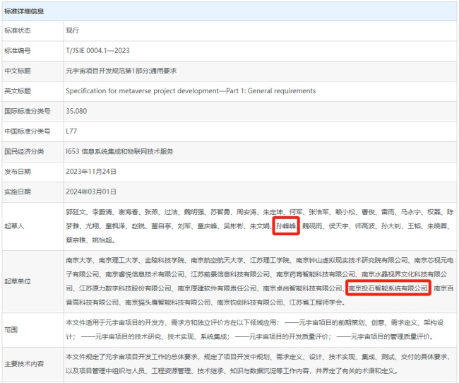 南京投石參與起草《元宇宙項(xiàng)目開發(fā)規(guī)范第1部分:通用要求》團(tuán)體標(biāo)準(zhǔn)