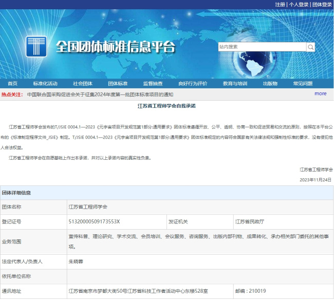 2023年11月24日,江蘇省工程師學(xué)會(huì)聯(lián)合南京投石智能系統(tǒng)有限公司等單位發(fā)布T/JSIE 0004.1—2023《元宇宙項(xiàng)目開發(fā)規(guī)范第1部分:通用要求》團(tuán)體標(biāo)準(zhǔn)。該團(tuán)體標(biāo)準(zhǔn)遵循開放、公平、透明、協(xié)商一致和促進(jìn)貿(mào)易和交流的原則,按照全國(guó)團(tuán)體標(biāo)準(zhǔn)信息平臺(tái)公布的《標(biāo)準(zhǔn)制定程序文件_JSIE》制定。