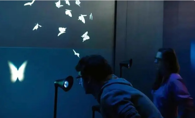 在這個(gè)裝置前,你可以許下自己的愿望。當(dāng)你說出愿望時(shí),抽象的語音會(huì)瞬間轉(zhuǎn)化為美麗的蝴蝶在空中飛舞。不同的愿望對(duì)應(yīng)著不同顏色的蝴蝶,你甚至可以捕捉這些蝴蝶,探索別人的愿望,收集所有的夢(mèng)想和希望。 在中國的南京投石,也有著類似的神奇裝置。在鄭州新田360廣場(chǎng)國貿(mào)店和北京天壇幻想博悟館,南京投石帶來的許愿池互動(dòng)投影裝置,讓每一個(gè)游客都感受到了科技與自然的完美融合。當(dāng)硬幣輕輕落入水面,波紋蕩漾,光影交織,仿佛整個(gè)許愿池都被賦予了魔法。而每一個(gè)愿望,都得到了獨(dú)特的回應(yīng),仿佛是大自然在低語,傳遞著美好的祝福。