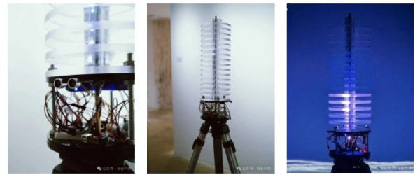 藝術(shù)家利用超聲波傳感器,使裝置能夠感知觀眾的距離,從而產(chǎn)生獨(dú)特的音效和燈光互動(dòng),與現(xiàn)場觀眾進(jìn)行一次藝術(shù)共創(chuàng)的合奏。