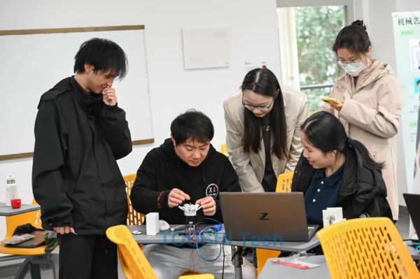 工作坊的尾聲,現(xiàn)場的同學(xué)們展示了他們的成果。每一朵機械花都獨樹一幟,有的注重美觀外觀,有的強調(diào)復(fù)雜動作。機械藝術(shù)實踐工作坊不僅激發(fā)了學(xué)生們的創(chuàng)新思維,也對他們的動手能力和跨學(xué)科協(xié)作能力進行了有效的鍛煉。