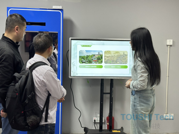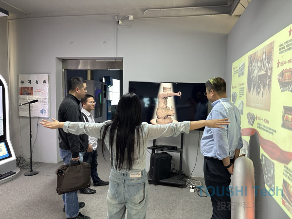 中午,蘇州大學(xué)領(lǐng)導(dǎo)一行在投石科技人員的陪同下,參觀了新媒體藝術(shù)展廳。在投石新媒體藝術(shù)展廳,投石科技人員向蘇州大學(xué)的領(lǐng)導(dǎo)們?cè)敿?xì)介紹了投石科技在新媒體藝術(shù)領(lǐng)域的創(chuàng)新成果和技術(shù)應(yīng)用。展廳內(nèi)充滿科技感的展示項(xiàng)目和互動(dòng)體驗(yàn)環(huán)節(jié),尤其是2023年和南京大學(xué)、南京信息職業(yè)技術(shù)學(xué)院合作的“AI與中國(guó)古典藝術(shù)的氣韻再生”這一系列展品將中國(guó)古典藝術(shù)與現(xiàn)代AI技術(shù)相結(jié)合,通過獨(dú)特的創(chuàng)作手法,讓古典藝術(shù)煥發(fā)出新的生機(jī)與活力,給領(lǐng)導(dǎo)們留下了深刻的印象。他們對(duì)展品的創(chuàng)意和技術(shù)水平表示贊賞,并就相關(guān)技術(shù)的應(yīng)用場(chǎng)景和發(fā)展趨勢(shì)進(jìn)行了深入交流。投石科技的新媒體藝術(shù)項(xiàng)目不僅展現(xiàn)了藝術(shù)與科技的完美結(jié)合,也體現(xiàn)了公司在技術(shù)創(chuàng)新和市場(chǎng)應(yīng)用方面的強(qiáng)大實(shí)力。