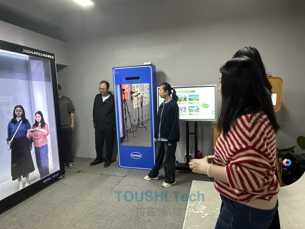 在展廳里,投石工作人員熱情接待了南京師范大學中北學院的教師團隊,并引領他們參觀了公司的新媒體藝術展廳。展廳內陳列了投石科技近年來在新媒體藝術領域的杰出成果和創(chuàng)新作品,充分展示了公司在互動展示、數(shù)字藝術、創(chuàng)意設計等方面的強大實力。尤其是和南京大學、南京信息職業(yè)技術學院合作的“AI與中國古典藝術的氣韻再生”這一系列展品互動,讓教師團隊一行對投石在新媒體藝術領域的專業(yè)技術和創(chuàng)新理念表示了高度贊賞,并就相關技術和應用與投石科技的工作人員進行了深入交流。