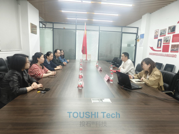 隨后,雙方移步至會議室,進行了座談交流。投石董事長孫峰峰先生作為南師大校友,首先分享了自己在校時的創(chuàng)業(yè)經歷以及公司的發(fā)展歷程。他詳細介紹了投石科技在互動展示、數(shù)字藝術等領域的創(chuàng)新成果,并強調了跨學科專業(yè)在當前社會中的重要性。接著,與會人員觀看了投石科技的企業(yè)宣傳片,通過宣傳片詳細了解了公司近年來與高校的合作模式和具體案例。