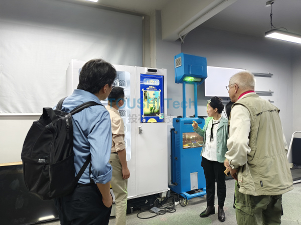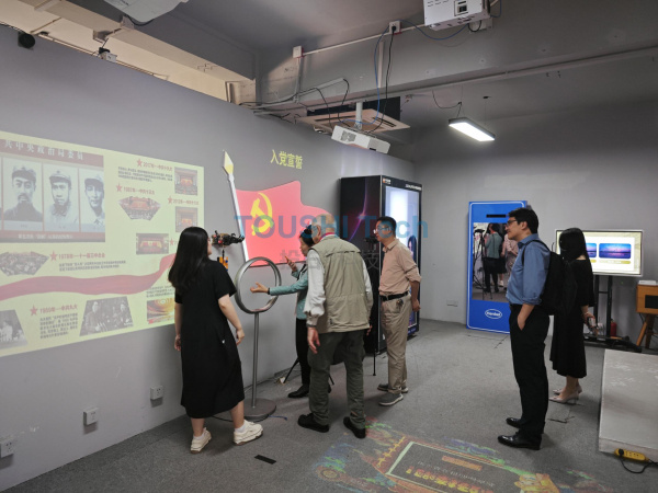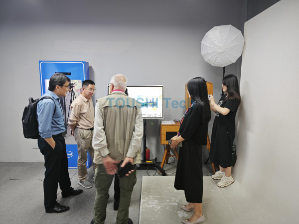 在孫峰峰的陪同下,霍爾先生和于皓女士首先參觀了投石科技的新媒體藝術(shù)展廳。展廳內(nèi)陳列了多個(gè)前沿且富有創(chuàng)意的藝術(shù)互動(dòng)裝置,包括人像復(fù)刻機(jī)、墻體3D mapping投影、靈活的機(jī)械手、AIGC拍照機(jī)以及氣韻再生AI繪畫大模型等。這些裝置不僅融合了科技元素,更展現(xiàn)了深厚的藝術(shù)底蘊(yùn)。代表團(tuán)成員們紛紛駐足體驗(yàn),對(duì)投石科技在藝術(shù)與技術(shù)結(jié)合方面的成就表示高度贊賞。