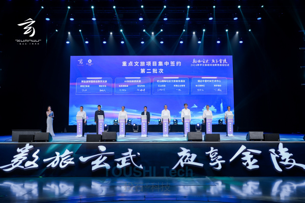 活動當(dāng)天,還舉行了16個重點文旅項目的集中簽約儀式。其中,南京投石科技成功與南京玄武湖街道、江蘇省藝術(shù)與科學(xué)中心分別簽訂了《AI體驗旅游資源》合作協(xié)議和《國際數(shù)字藝術(shù)大賽》合作協(xié)議,展現(xiàn)了公司在文旅產(chǎn)業(yè)領(lǐng)域的創(chuàng)新實力和前瞻性布局。
