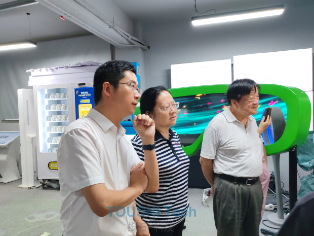 最后,雙方就當前經(jīng)濟形勢、行業(yè)發(fā)展趨勢、企業(yè)經(jīng)營管理等多方面內容進行了深入交流與探討。南京市南通商會輪值會長一行對投石科技所取得的成就給予了高度評價,并表示商會將一如既往地關注和支持本土企業(yè)的成長與發(fā)展,希望未來能加強與投石科技的交流合作,共同為助力南通經(jīng)濟文化繁榮發(fā)展,賦能更多南通籍企業(yè)家。 會前,他們一行先后參觀了南京投石科技有限公司新媒體藝術展廳。在展廳內,商會領導層被一系列高科技互動裝置和藝術作品深深吸引。這些作品巧妙地將投石科技的核心技術——如數(shù)字投影、觸控交互、虛擬現(xiàn)實(VR)、增強現(xiàn)實(AR)等——融入藝術設計中,創(chuàng)造出既具科技感又富含文化內涵的沉浸式體驗空間。從流光溢彩的墻面投影到可以觸摸并與之互動的虛擬場景,每一項展示都讓人目不暇接,仿佛置身于一個充滿無限可能的未來世界。 參觀過程中,投石科技的工作人員還詳細介紹了每項技術的原理、應用場景以及背后的研發(fā)團隊和創(chuàng)新故事。這不僅讓商會領導層對投石科技的技術實力和市場前景有了更為直觀和深入的了解,也激發(fā)了他們對于科技創(chuàng)新與產業(yè)升級的濃厚興趣和深入思考。