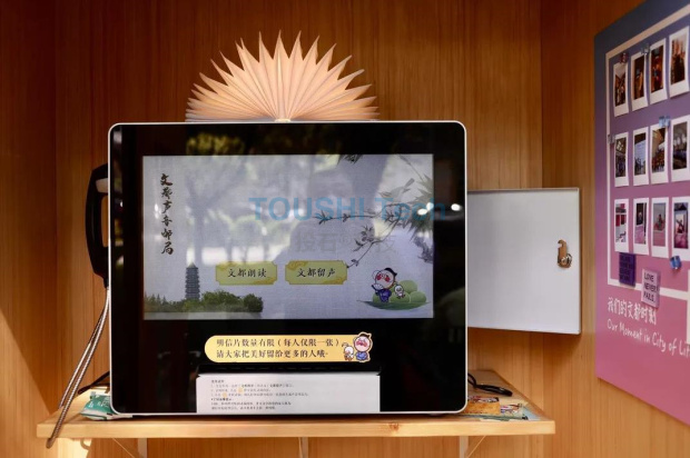 在南京世界文學(xué)客廳的院子里面,有一個特別的存在——文學(xué)之都的聲音郵局裝置。這是南京投石在2022年為展廳專屬定制的互動裝置,為民眾帶來了更為多元的文化體驗(yàn)。正如央視新聞報道中講解員萬梓葉介紹的那樣,在這里,人們可以錄制一段話給好朋友。