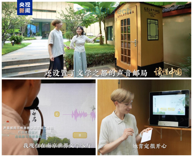 近日,央視新聞報道,聯(lián)合國中文日青年文化使者、德國視頻博主朱迪來到南京,開啟了一場探尋古都千年文脈的奇妙之旅,親身感受了“世界文學(xué)客廳”的獨(dú)特“科技范兒”。尤其是南京世界文學(xué)客廳內(nèi)一項創(chuàng)新的文化科技裝置——“聲音郵局”,展現(xiàn)了南京作為“世界文學(xué)之都”在傳承與創(chuàng)新方面的獨(dú)特魅力。
