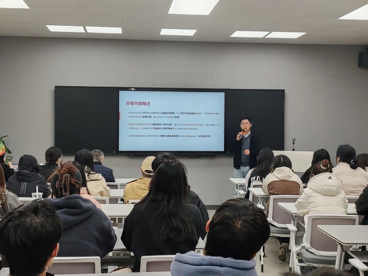 2024年12月5日,南京投石智能系統(tǒng)有限公司董事長(zhǎng)孫峰峰應(yīng)邀來(lái)到正德職業(yè)技術(shù)學(xué)院參觀調(diào)研,并為師生做主題為“新媒體藝術(shù)的創(chuàng)新之路:AI技術(shù)賦能視覺藝術(shù)發(fā)展”的講座。學(xué)院藝術(shù)設(shè)計(jì)與建筑工程系主任周衛(wèi)、副主任陸松及黨支部書記楊春娟等領(lǐng)導(dǎo)出席了此次講座。