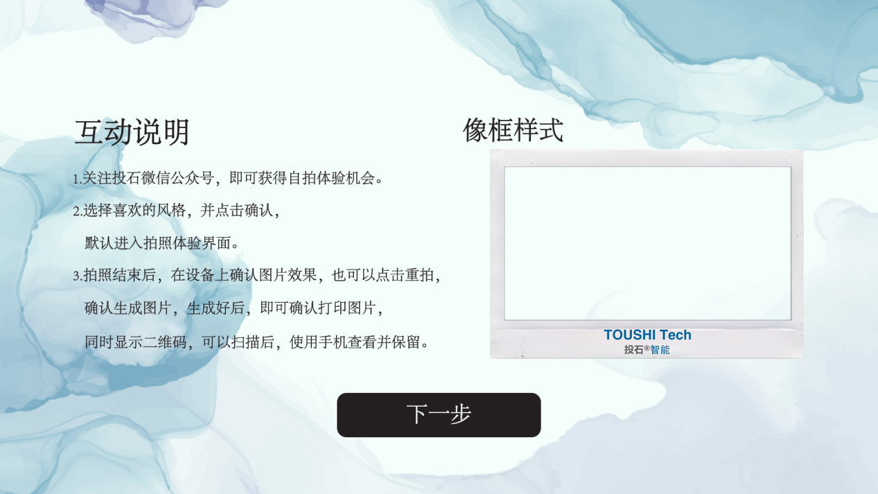 交互后,設(shè)備顯示產(chǎn)品互動(dòng)說明及相框樣式